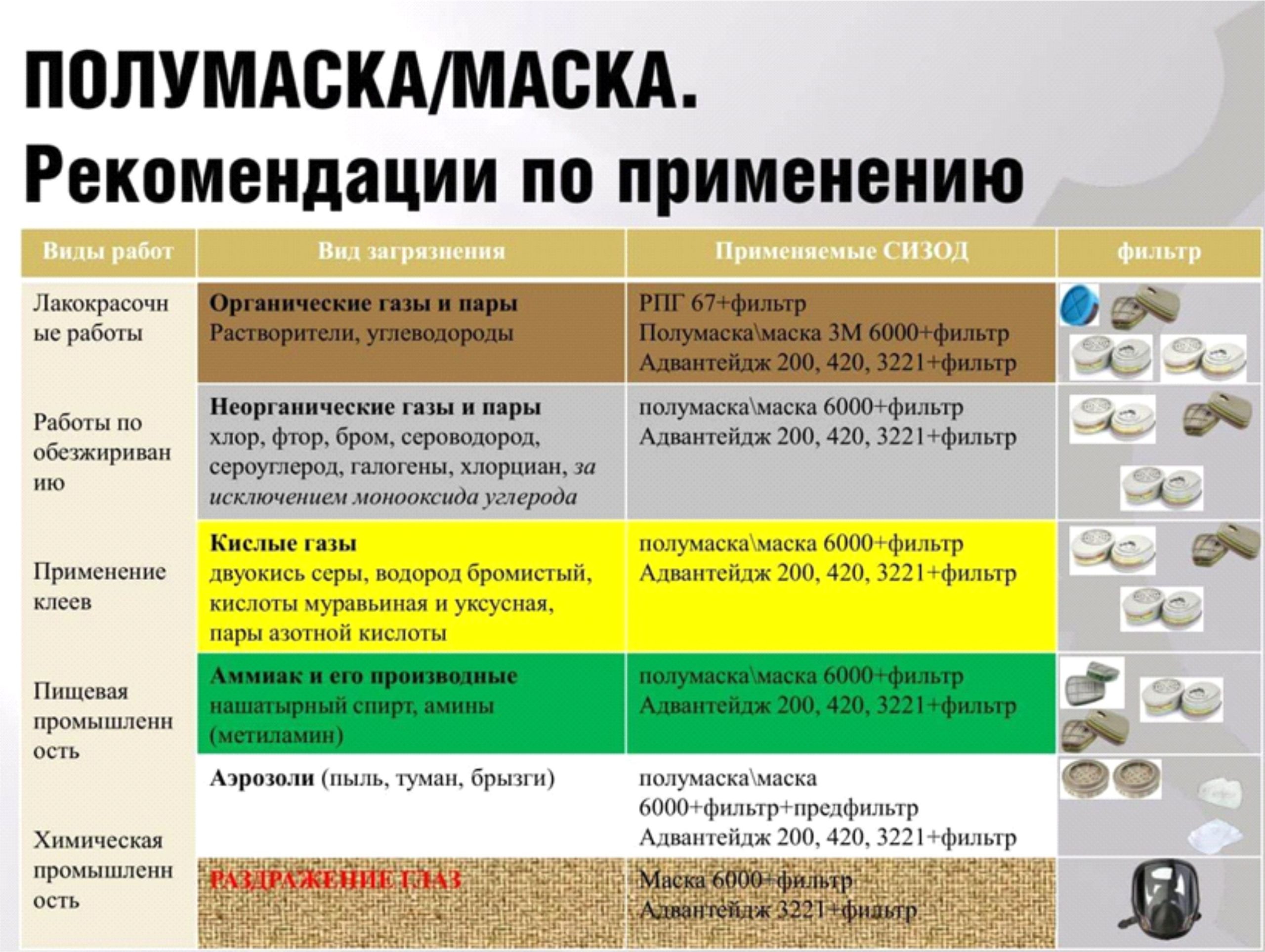 Для защиты от химических веществ, таких как пары кислот, газов или растворителей, необходимо использовать устройства с фильтрами, которые обеспечивают барьер для таких загрязнителей. Важно, чтобы фильтры были специально предназначены для определённых веществ, чтобы они эффективно их нейтрализовали и предотвращали попадание в организм вредных компонентов.